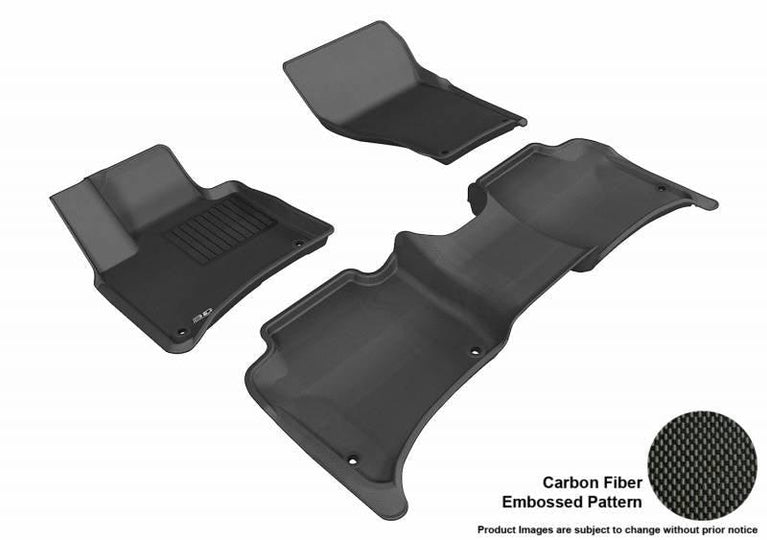 Unlike the traditional floor mats with heavy weights, commercial rubbery looking 3D MAXpider custom-fit floor mats are the revolutionary interior protection for your vehicles with an innovative, unique three-layer structure. The digitized three dimensional design measured to exact cabin contours of your vehicle for trapping mess and spills yet, patented anti-skid backing keeps mats in place without harming the original carpet. Choices of stylish carbon fiber texture rubber surface or classic looped fabric surface.