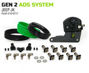 Introducing our Gen2 Air Delivery System (ADS) Jeep Wrangler & Unlimited JK & JKU front engine mount without an Spod that allows you to inflate or deflate all four tires simultaneously which makes managing tire air pressure quick and easy. Our system can manage air through an on-board permanent air source with dedicated air inlet or through portable air pump that can attach through an external Schrader valve. Each kit comes complete with DOT approved 3/8”air line throughout the system, whips with quick connect chucks with our Betty Bar feature, ADS control box with air regulator and 90-degree Schrader valves. Our Gen2 system is designed specifically for your application with pre-cut hoses and quick connect fittings to make the installation fast and easy.