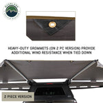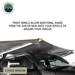 The HD Nomadic 180 Awning Connector Pieces are available in 2 different versions. The 2 piece version includes 2 panels that slide into the rear and front of your HD Nomadic 180 Awning. It includes Grommets, and Guide Lines to be able to add more sturdiness to your 2 180 Awnings. The 6 piece version also includes 2 pieces that slide into the 2 180 awnings, but also includes 2 wall panels that zip to the front and rear sides of the panels, as well as an additional roof panel that zips toward your vehicle/trailer that fills the gap from the connector to your vehicle/trailer. The 180 connector pieces offer an expansive 244.5 sq/ft coverage area when paired with 2 HD Nomadic 180 Degree Awnings. The roof and wall panels offer complete wall coverage when paired with existing 180 Awning Walls.