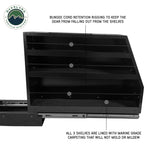 The Overland Vehicle Systems CP Duty Highline Slide Out Glamping Storage System is the perfect solution for those who need extra space in their rig without having to sacrifice style. Its sleek design and durable construction guarantee that your cargo will be secure during transport, no matter where you're headed. The three convenient storage shelves make it easy to access important items quickly, and when you're done using the drawer, it retracts fully into its housing to save space. With this slide out glamping storage system, you can store all your camping equipment and supplies safely while still enjoying the comfort of the outdoors. Make sure your next outdoor adventure is organized with Overland Vehicle Systems CP Duty Highline Slide Out Glamping Storage System!