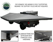 When you're looking for a quick deploying one-man operation awning that gives you 88 square feet of shelter you came to the right place. Unlike other awnings, our Nomadic 180 requires no poles to set it up because of the pair of reinforced oversize hinges and heavy-duty rafters.