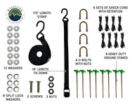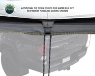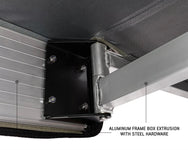 When you’re looking for a quick deploying one-man operation awning that gives you 80 square feet of shelter you came to the right place. Unlike other awnings, our Nomadic 270 LT requires no poles to set it up because of the pair of reinforced oversize hinges and heavy-duty rafters. Our covers are manufactured out of 600D poly cotton rip stop material that has heat sealed seams which ensure you’re not going to see any leaks through seams regardless of the size of rain you’re dealing with. If you see the weather changing or something stronger than a breeze turns up, you can deploy the three pivoting aluminum poles and adjust to your desired height with a quick lock system in seconds. When its time to lock down base camp for serious weather, deploy the poles, secure the stakes with the supplied para-cord and put up the optional enclosure shelter and your ready to take on some the most severe storms. When its time to stow your Nomadic 270 away it takes minutes to break down and secures nicely in 1000g PVC cover.