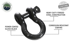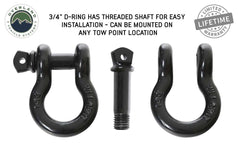 Overland Vehicle System 3/4 Recovery Shackle in black is heavy duty forged D ring style shackle. Each OVS shackle has a two stage powder coat. First layer is Electrostatic plated and then a heavy duty black powder coat finish is applied which is the same process as the Original Automotive Manufactures do. The shackle has multiple uses in recovery but the most common is affixed to a bumper however for more information see below for chart of uses with a shackle. Highly recommend a at least two shackles and tow strap when off road.