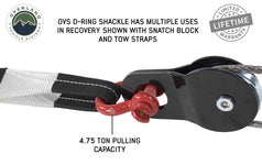 Overland Vehicle System 3/4 Recovery Shackle in Red is heavy duty forged D ring style shackle.  Each OVS shackle has a two stage powder coat.  First layer is Electrostatic plated and then a heavy duty Red powder coat finish is applied which is the same process as the Original Automotive Manufactures do.  The shackle has multiple uses in recovery but the most common is affixed to a bumper however for more information see below for chart of uses with a shackle.  Highly recommend at least two shackles and tow strap when you're off road.