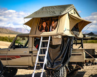 Overland Vehicle Systems TMBK Roof top tent’s are made from the finest materials. Starting out with heavy aluminum plated base assembled using marine grade stainless steel hinged and hardware! Features a 81” square sliding ladder with steel hinges! Our Roof Top Tents are 4 seasons ready! Our Rooftop Tents are constructed using a 600D Heavy Duty Poly Cotton Rip Stop Canvas bodies that are build to stand the test of time through the harshest of conditions you can put yourself in. The Rainfly’s are made of a 420D Heavy Duty Polyester Oxford Waterproof Material to protect you and your family from the rain and snow!