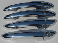 Your package will include QAA's 8 piece Chrome Plated ABS plastic Door Handle Cover Kit, Without passenger side key accessStainless Steel DOOR HANDLE and TAILGATE HANDLE TRIM ACCENTS are designed to be a CHROME LIKE accent for the door handles and or tailgate handle. They are unique, creative and individualized! Some door handle accent kits are simply strips of steel that enhance the existing structure, while others may be a surround trim, complete cover, or any combination thereof. Some door handle trim accents accommodate smart key access, passenger key access or rear camera mounts. Please refer to the product listing for more details. Stainless steel door handle and or tailgate handle accessory trim is pre-formed for each vehicle model from a Highly Polished Stainless Steel, with a full coverage 3M acrylic foam adhesive backing to enhance the look of your vehicle. All of our stainless steel products are created from inception to packaging by our team of professionals, on location in Westford, Mass. Door handle and or tailgate handle accent trim is polished to a mirror shine, giving it a CHROME look. The polished surfaces are protected by a plastic film to be removed after installation. All of QAA's Stainless Steel Trim products are easy to install with a "peel and stick" application of the pre-applied 3M tape on every piece; no drilling, cutting or alterations are required. The bond is water tight and will last a lifetime.