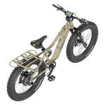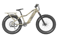 Ranger E-Bike (22 RAN 10 PSD 17) by QuietKat®. Motor Power: 1000W. Color: Veil Poseidon Dry Camo. Designed to Get Off the Grid. The heritage of the American Ranger is built on rugged exploration and boldly treading into uncharted territory. The QuietKat Ranger fat tire electric bike proudly continues to explore the unknown. With a durable but well-balanced frame and a powerful 750 watt rear hub motor, the Ranger tackles rough terrain steadily and confidently. QuietKat's performance component package includes 203mm mechanical disc brakes, a front suspension fork, and an all-new integrated heavy-duty rear rack system for carrying even more gear! The Ranger is the ideal companion for a weekend exploring deep into the forest.