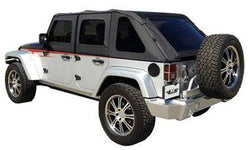 Fits 2007 to 2016 Wrangler Unlimited and Rubicon Unlimited 4-door models Black diamond With tinted windows Windows can be removed to convert to safari top No hardware, sits on roll bar Fastback look Requires windshield header channel 901007, factory door surrounds 61098 and tailgate bar 52601-01