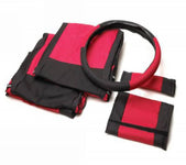 Rampage Durable Polycanvas, Black And Red Combo Pack Includes 2 Polycanvas Seat Covers With Draw Cords, Matching Seat Belt Shoulder Harness Covers And Steering Wheel Cover. Features A Large Storage Pocket On Seat Back And Small Zippered Pockets On Side