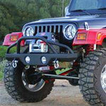 Fits 1976 to 2006 Wrangler and CJ Gloss Black powder coat Custom welded Shackle mounts with 3/4" shackle d-rings Durable powder coat finish 3/16" steel plate design Two 4" light openings Lights sold separately Recovery Bumpers Day Or Night, This Lighted Tough Bumper Gives The Off-road Enthusiast Some Serious Protection Engineered For Off-road Use And Rock Crawling Abuse! Custom Welded Shackle Mounts With 3/4"Clevis D-rings Included Heavy-duty Bumper Features Protective Dual Stage, Durable Powder-coat Finish And A 3/16"Steel Plate Design With Two 4"Light Openings For A Custom Look. Recovery Bumper has two 4 inch light receptacles – lights sold separately.