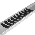 Raptor Series 6 inch OEM Style Brushed Aluminum Slide Track Running Boards offer a full 6 inch step area and features slip resistant step treads. They offer a stylish look with their unique angled end caps and are offered in a modern brushed aluminum finish. They are constructed of anti-corrosion aircraft grade aluminum for long lasting durability and lightweight construction. All kits have a recommended weight rating of 400 lbs. Backed by a limited lifetime manufacturer warranty on the workmanship/structure and a 10 year limited manufacturer warranty on the brushed aluminum finish! These running boards are a part of our Slide Track Series product line. Each of our Slide Track Series products are equipped with a track system which will work with any of our vehicle specific brackets, allowing for an easy no-drill installation. The Slide Track system allows you to adjust the positioning of your running boards along your vehicle for a fit that is tailored to your liking. You also have the option to customize your truck with a different style of our slide track steps without having to change the brackets if your preference should change. All Slide Track Kits are compatible with Raptor Series branded bracket kit covers and 10 inch universal LED light strips (Sold separately). Thermoplastic bracket covers protect your brackets and provide them with a clean factory look. The 3M backed LED Light Strips are available in white and RGB and a great addition to easily add lighting to your steps.