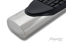 Stepping onto a wider area such as the Raptor 5 inch oval bar offers an exceptional stepping area that goes well with full size and heavy duty trucks. They are made from tough marine grade stainless steel and the end caps are made to lock out moisture and help prevent corrosion. The black bars have plastic end caps.