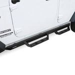 Magnum RT Gen 2 Steps are the 2.0 version of the original RT Step. They are 30% longer and wider with a die stamped slotted step area providing increased traction to securely step into the vehicle in any weather condition. They have a unique modern angled drop step design for easy and comfortable entry into the vehicle. Made from 14 gauge steel and finished with a 3 stage black powder coating system. Quality guaranteed with a limited lifetime manufacturer warranty on the workmanship/structure and a 10 year limited manufacturer warranty on the black powder coated finish.