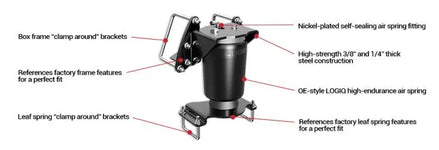 - Precision Fitment - Built-in features that locate off the factory frame and leaf spring locations guarantee proper fitment, geometry, and operation for every install.