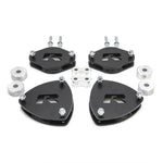 - Offset designed fabricated heavy duty steel plate top mount strut extensions maintain factory alignment geometry.