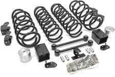 Readylift announces a brand new line of affordable yet capable Coil Spring Lift Kits for the all-new 2018 Jeep JL Wrangler and Wrangler Unlimited Rubicon, Sport and Sahara. Using a decade's worth of engineering science derived from our popular JK & JL SST lift kits, our R&D team created two new versatile custom linear coil spring lift kits featuring increased spring rate. This revised spring rate translates to a much improved overall ride on the street while preventing the Jeep JL from settling or sagging with the added weight of heavy bumpers, winches and other off-road related accessories. The 69-6835 Coil Spring Lift Kit provides 3.5 inches of front lift and 3.0 inches of rear lift on Sahara and Sport models (non-Rubicon) with clearance for up to 35'' tires. The 69-6835 (Sport/Sahara) kits feature four hot wound linear springs with increased spring rates and a durable powder coat finish for care free corrosion protection on or off road. These springs don't just maintain the factory ride - they improve the ride and handling! Kits include CNC-bent laser cut steel shock extensions for both the front and rear and utilize an offset design to retain the factory shocks at an ideal angle for lifted situations and preserve factory ride quality. Our two all-new Coil Spring Lift Kits go beyond the basics and includes longer sway bar end links as well as custom-tailored bump stop extensions. These new bump stop extensions are an essential component when lifting the new Jeep JL. Each bump stop extension is size-specific for Rubicon or Sport/Sahara to maximize wheel travel.