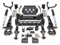 Our new "clam-shell" style lower strut extension retains use of the factory struts and does not require strut rotation. These new clam-shell brackets utilizes our TCT lower bushings to provide a precise pivot point that maintains the factory ride. The addition of our proprietary new tubular upper control arms with TCT pivot bushings ensures prolonged upper control arm strength which is far superior to the OE stamped steel control arms. To lift the rear, new 5" tall fabricated steel rear blocks with integrated bump stop landings and an add-a-leaf has been added as well as new Bilstein 5100 series rear shocks.