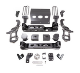 The new Readylift Ford F-150 6” kits are equipped with heavy-duty 1/4" steel plate construction front and rear crossmembers that offer unmatched strength for all driving conditions. Featuring a set of durable lifted knuckles and strut spacers, you gain enough ride height to run up to 35-inch tires with the right wheel, or a 37” tire with some trimming! The new 6” systems include everything necessary to correct suspension, steering, and driveline geometry to maintain on-road handling while improving strength and offroad capability. Fabricated steel 4" tall rear block offers the correct amount of rear lift while the factory-style U-bolts aid in ease of installation.
