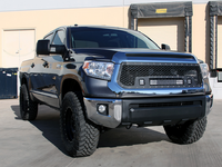 LED Grilles by Rigid Industries 2014-2016 Toyota Tundra Grille features a new top mounting plate which is bolted in place. Custom laser-cut mesh pattern to match the factory Tundra grille pattern. Like all of our grilles, it is constructed from stainless steel with ultra-durable powder coat. Fits (1) 20" E-Series and (2) D-Series LED lights. Installation requires modification to your OEM grille shell. We recommend professional installation.