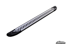 Chevrolet Silverado RAL-T Runing Boards are the newest European design from the Romik labs. Designed to compliment the lines of today's trucks RAL-T is made from aircraft quality triple wall aluminum extrusion and it is complemented by black end caps with grip assurance technology. With safety and style in mind RAL-T will set your Chevrolet Silverado apart from the rest.