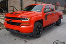 Chevrolet Silverado ROF-T Runing Boards are the newest European design from the Romik labs.Our version of the popular rough step but with modern and updated looks. Made from Aircraft quality HD aluminum and designed to withstand the elements. ROF-T is available for all Trucks, bring your Chevrolet Silverado up to date with Romik ROF-T
