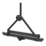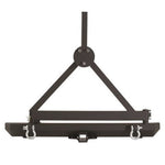 The perfect add-on to your Jeep when you have oversized tires. Original Jeep tailgates are unable to support the weight of an oversized tire- especially when you are off road. This bumper mount tire carrier takes the load off the tailgate and puts it on the frame mounted bumper. Each tire carrier incorporates grease fitting to keep the hinge mechanism running smooth. Constructed of the finest materials and Zinc under-coated, Dual Stage durable powder coat painted, this heavy-duty off road design is built to last. Will hold up to 35"" tire. Available in Textured Black only.