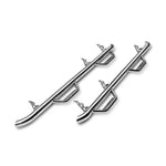 No other manufacturer has demonstrated more commitment to quality and progression in sidebar products than Smittybilt. Over the last 3 years, Smittybilt has redesigned, upgraded, and improved every last nuance of each Smittybilt Sure Step application. All step pads are secured with five pins into a squashed step, which means no flimsy pad attachments and no exposed metal vulnerable to rust. Every Sure Step is powdercoat painted, 3/8-1/4 steel no-drill brackets that are custom designed to ensure a no bounce fit and simplified installation. Smittybilt incorporates a third *center bracket for additional support, making Sure Step the firmest and sturdiest tube step ever created. All Smittybilt Sure Steps are custom fit to the specific vehicle application. Unlike other brands, we do not use generic length tubes with cheap brackets. We back our product better than any manufacturer! While other companies try to reduce their paint warranties, Smittybilt maintains their 5-year limited warranty on powdercoat painted Sure Steps, and a lifetime limited warranty on polished stainless steel finishes.