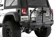 The Smittybilt XRC Atlas rear bumper have gone through extensive design and testing to meet stringent international pedestrian safety standards. As a result, the bumpers is stylishly chiseled as well as being extremely strong and functional. The rear bumper utilizes a new cam-style pin adjustment for ensuring perfect gate stowing every time. Re-opening the gate is simple too, only requiring minimal effort, however you can rest easy as the double latch will eliminate accidental opening. The bumper allows im2018sive ground clearance and can accommodate up to 37 Inch tires. Enjoy the MOLLE Pals compatibility to allow multiple pouch mounting configurations. The bumper includes a Class III rated hitch, mounting locations for your jerry can and lift jack (Jack and Hi-lift are not included) and a 3rd brake light mounting bracket