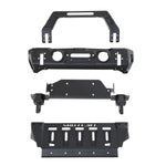 The Smittybilt Stryker Modular front bumper for Jeep Wrangler JK/JL models comes with integrated D-ring, overrider with 13 inch light bar provision, lift points and winch mount that will accommodate up to a 12,000 lbs. winch.