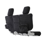 The ultimate storage solution for your off road vehicle! The G.E.A.R. seat cover is a completely new way of looking at storage for your off road needs. Each cover is manufactured from 600 Denier Polyester with a PVC liner and is completely adjustable. The G.E.A.R. comes with seven different pouches that securely fasten using a Molle/Pals Restraint System which will not come loose under the harshest off road conditions. Its offered in three different colors - Black, Coyote Tan and Olive Drab Green and is completely UV stable. Smittybilt provides the best in G.E.A.R for all of your Off Road Needs. Available in Black (01), Tan (24) and Olive Drab (31). *If you have side airbags in the seat, you must leave the Velcro band loose.