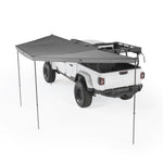 The Smittybilt 180 Degree Awning pulls out and can be set up in seconds while providing you enough sun protection to enjoy the sights. With a sleek and rugged design, you can rest easy knowing this awning will withstand the elements. Rugged construction with lightweight extruded aluminum backbone system and self-contained telescopic twist-lock poles all contained in a heavy-duty zippered PVC travel cover to protect your awning from getting beat down on while traveling to your destination. Optional walls zip in place to provide additional shade and protection from the elements.