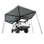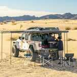 The Smittybilt 270 Degree Awning pulls out and can be set in seconds while providing you enough sun protection to enjoy the sights. With a sleek and rugged design, you can rest easy knowing this awning will withstand the elements. Rugged construction with lightweight extruded aluminum backbone system and self-contained telescopic twist-lock poles all contained in a heavy-duty zippered PVC travel cover to protect your awning from getting beat down on while traveling to your destination. Optional walls zip in place to provide additional shade and protection from the elements.