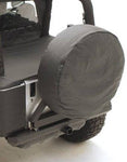 UV rays and heat from the sun can prematurely age rubber. After prolonged exposure to the sun your spare tire can develop cracks and deteriorate without ever contacting the road. To make sure your spare will be in top condition when you need it, protect it with a spare tire cover from Smittybilt. These covers are designed to only fit tires within a limited diameter range, so you'll have a cover that fits your tire like a glove.Made of durable denim vinyl material and available in a wide range of colors, these covers come in 4 sizes to fit 27"-29", 30"-32", 33"-35", and 36"-37" x 12.5" tires.
