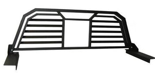 Customize the look of your Rack with angled louvers (non-removable). Features opening for convenient window pass-through. All steel construction with "Stealth Black" (semi-gloss, fine texture) powdercoat finish. Comes standard with tonneau cover compatible bed rails (mounts). Optional tool box compatible bed rails are available. Includes mounting hardware.