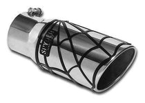 Stainless steel web design with Spyder Industries logo, powder coated in semi-gloss black and wrapped around a polished stainless core. Modest slash cut with rolled edge for finished appearance. Sold individually. Price varies by size selected. (Available dimensions: 4"x5"x12" and 5"x6"x12").