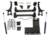 This kit includes front knuckles, front strut spacers, cross-members, belly pan skid plate, bump stop brackets, a rear block and u-bolt kit, and rear shocks. All require parts are included to make sure your Toyota Tacoma rides and handles just like stock.