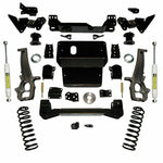 - All brackets, cross-members, shocks, steering knuckles, rear coil springs, rear track bar bracket, and hardware required specific to the 2012-2018 4WD Dodge Ram 1500