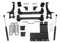 This kit includes front knuckles, front strut spacers, cross-members, belly pan skid plate, bump stop brackets, a rear block and u-bolt kit, and rear shocks. All require parts are included to make sure your Toyota Tacoma rides and handles just like stock.