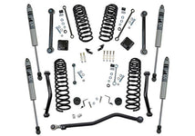 To complement these new dual rate Gladiator coil springs, the kit also includes front adjustable track bar, shock extension brackets or Fox Shocks, compression stop spacers, and extended sway bar links. The Fox Shocks or shock brackets allows the maximum amount of extension travel without drive shaft bind and the compression stop spacers prevent tire rub during full compression.