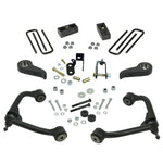 - Upper control arms with MOOG bushings and ball joints already pressed in. Forged torsion keys, differential spacers, rear block kit, Front and Rear Shock extensions, and all hardware specific for the 2020-2021 Chevrolet Silverado or GMC Sierra 2500 and 3500 HD