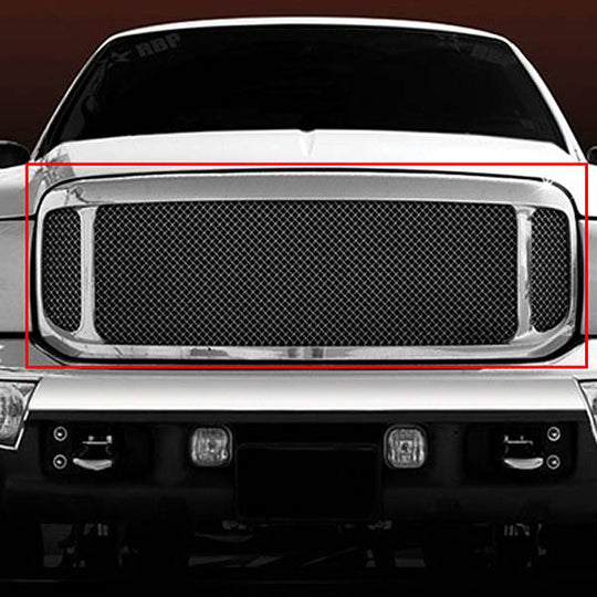 T-Rex 2000-2004 Ford Excursion 1994-2004 F250 F350 Super Duty Grille Assembly Aftermarket Chrome Shell With Mesh (54571) Installed Polished 50571