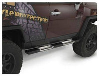 Easy to install, Rock Bars are constructed of heavy-duty 24 rectangular steel, and designed to protect the entire length of the rocker panel. Polyurethane end caps keep the tube free of debris. Rock Bars are black powder-coated for durability and can be ordered with an optional inset entry step in polished or black diamond plate. FJ Cruiser Rock Bars have 3 legs per bar and attach to 10 existing mounting locations on each side of the vehicle.
