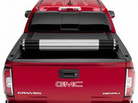 The BAK Revolver X4, featuring the same great features of the Revolver X2, now with a stylish matte black finish. When closed, heavy-duty aluminum slats secure the cover the full length of the bed on both sides, providing unrivaled strength and security. When opened, the cover rolls up tight providing full bed access without blocking rear view mirror and third brake light visibility. The RX4 is constructed of heavy-duty aluminum panels. When latched, the Patented Rotational Locking Rails secure the cover the entire length of the truck bed. Heavy-duty locking levers are now 3X thicker with reinforced gussets for added strength and are engineered to lock with no adjustment necessary.
