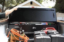 The BAKBox2 is a toolbox for the back of your truck that is designed to integrate with a BAK truck bed cover. Unlike a regular toolbox, the BAKBox2 has a wealth of design innovation built into it that sets it apart from any other toolbox The BAKBox2 can conveniently fold away when not in use, giving you full bed access when need to haul large loads. It‚¬„¢s made from solid FRP composite panels, making more impact resistant than an aluminum toolbox. Like all BAKFlip truck bed covers, the BAKBox2 lays completely flush and doesn't stick out above the rails of your truck, providing a clean, stylish look. BAKBox2 is made in the USA. installs quickly, and is guaranteed to last as long as your truck does. Secure your cargo by closing your BakFlip or Revolver X2 cover. This will render your BAKBox2 completely secure and out of sight for optimum style, security and organization.