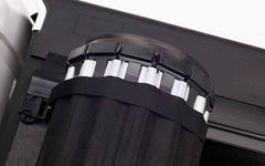 The BAK Revolver X2, features an exclusive automatic rotational locking rails that secure the cover the entire length of the bed on each side. This hard aluminum roll-up cover easily rolls up with one-handed operation and allows the use of every inch of the truck bed without blocking your rear window. This cover does it all with unrivaled strength, security, and style. The BAK Revolver X2 easily rolls up with one-handed operation from either side of the truck. The cover provides 100% bed access, perfect for any lifestyle. Buckles secure the cover in the tightly rolled cover in the open position for safe driving with rear view visibility.