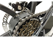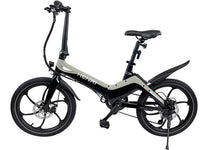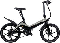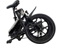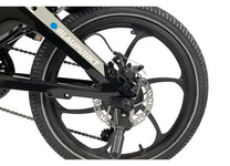 Sleek, durable, single die-cast foldable magnesium frame with no unsightly soldering joints.Portability at only 47 lbs, with an intelligent quick-release mechanism for easy storage, foldable pedals, and handlebar.Blaupunkt 36V 350W rear wheel hub motor, 50 Nm torque and maintenance free.Magnetic closure system to securely keep the bike folded during transportation.Roller blade-style wheel at the bottom of the folded frame for enhanced portability.High-quality disc brakes for reliable stopping power.6-speed Shimano SIS circuit for smooth gear shifting.20-inch puncture-proof 2.125 tires for worry-free rides.Pedal assist with a 3-stage control, adjustable via the LCD bike computer, reaching speeds up to 32 km/h (20 mph).Throttle assist control conveniently located on the hand grip, allowing speeds up to 20 mph (32 km/h).Li-ion battery with a capacity of 36 V/10.5 Ah, ensuring a short charging time.Removable and lockable battery case located inside the frame