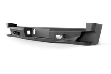 Constructed from heavy-duty steel with a rust-resistant E-coating and textured black powder finish, it offers lasting durability and a bold look. Dual 3” cube light mounts improve rear visibility, while integrated side steps provide convenient truck bed access.