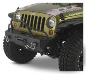 Fits 2007 to 2012 JK Wrangler, Rubicon and Unlimited 2 and 4-door models Winch bumper Clevis tabs Black powder coat Brush guard is 1.5" round steel tubing Our heavy-duty Rock Crawler Bumpers are designed for the off-road enthusiast who wants rugged construction, and a rounded underside to provide greater entry and exit clearance. Some rear bumpers have a light-duty 2 receiver hitch built-in. Constructed from high quality steel, bumpers are black powder-coated for lasting durability and good looks. The Brush Guard is a one-piece welded guard that is formed from 1-1/2 round steel tubing, and provides protection from shrubbery when off-roading to the front grill and headlights.