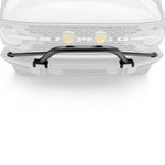 ZROADZ Off Road Products NEW Pre-Runner Baja Series Bars for the FORD Bronco® are designed to enhance your Ford® Broncos overall appearance and provide a functional forward-facing mounting system for LED lights. Commonly called a Bull Bar, ZROADZs aggressive forward design, oversized 2-Inch tubing and integrated LED mounting easily transforms your factory Ford® Bronco Modular Bumper into a full custom bumper without the custom price. Complete kits include a Ford Bronco® Pre-Runner Baja Bar, (2) 4-Inch-High Powered LED lights in White or Amber and a wiring harness with relay and toggle switch. Already have LED lights, we have options with only the Pre-Runner Baja bar and no Lights available too The main hoop is manufactured from high strength 2-inch mild steel tubing and welded to heavy gauge base plates that bolt directly to your Ford Broncos® Factory Modular Bumper. Installation is a breeze and accomplished by simply removing several bolts, installing the hoop, and reinstalling the hardware, thats it. ZROADZS Pre-Runner Baja Bars are finished in an all-Black, Low-Gloss Textured powder coated finish for Durability and come standard with a Limited Lifetime Structural Warranty and 3-Year warranty on the finish. All ZROADZ Offroad Products are Designed & Engineered in Corona, Ca, USA