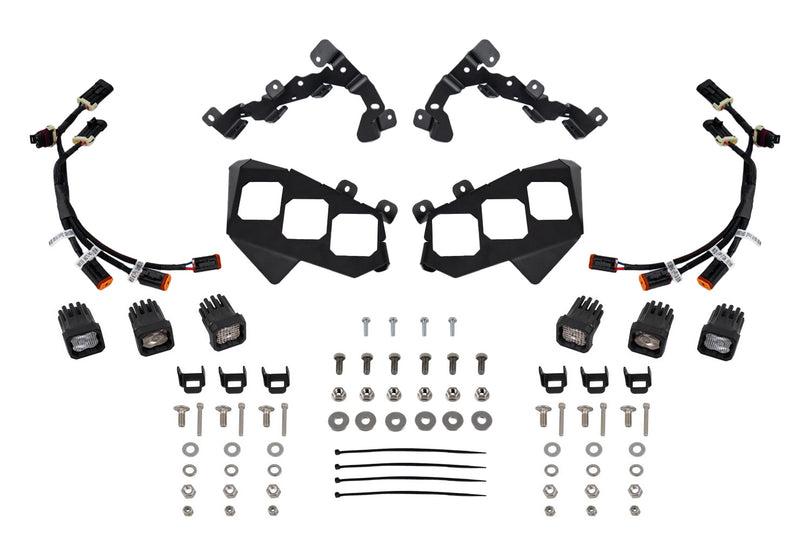 Introducing the Stage Series C1 LED Headlight Kit for the 2017-2024 Can-Am Maverick X3! This Headlight Kit is completely plug-and-play and the CAD-designed brackets allow you to mount six SSC1 LED Pods directly into the factory headlight openings. The LED pods feature custom-engineered TIR optics combined with high-power LED chips that deliver maximum headlight performance for the Maverick.